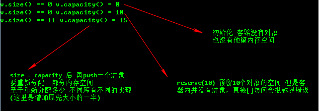 当然,这两个属性分别对应两个方法:resize() 和 reserve()。
