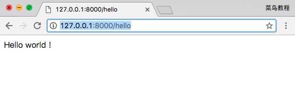 通过浏览器打开 http://127.0.0.1:8000/hello,输出结果如下: