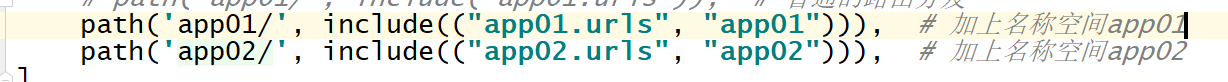 定义命名空间(include 里面是一个元组)格式如下:include(("app名称:urls","app名称"))