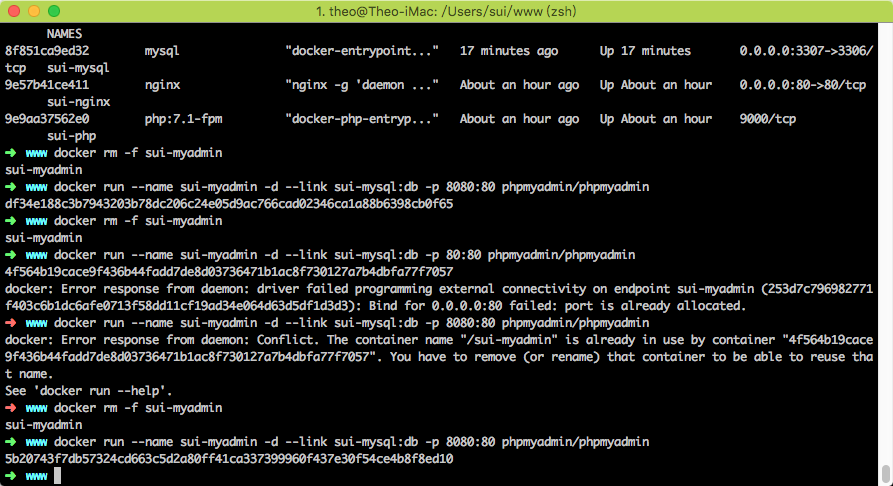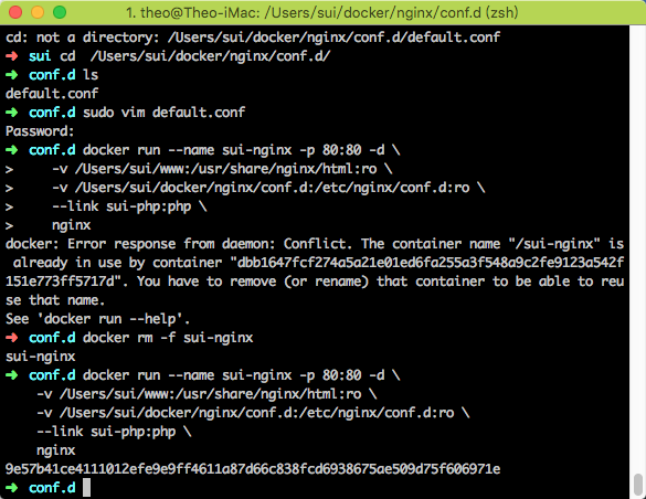 docker run --name sui-php -d \ -v /Users/sui/www:/var/www/html:ro \ php:7.1-fpm--name sui-php 是容器的名字。