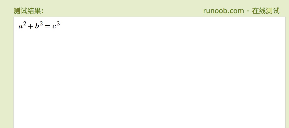 注意:大部分浏览器都支持 MathML 标签,如果你的浏览器不支持该标签,可以使用最新版的 Firefox 或 Safari 浏览器查看。