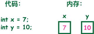 因此,通过定义不同类型的变量,可以在内存中储存整数、小数或者字符。