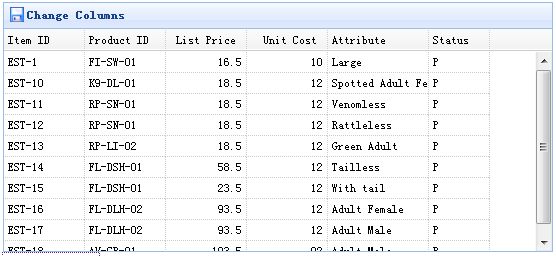 数据网格(DataGrid)列可以使用 'columns' 属性简单地定义。如果您想动态地改变列,那根本没有问题。为了改变列,您可以重新调用datagrid 方法,并传递一个新的 columns 属性。