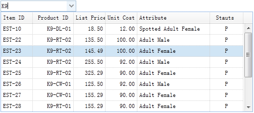 下拉数据网格(Combogrid)组件和下拉框(Combobox)组件的共同点是,除了都具有下拉面板以外,它们都是基于数据网格(Datagrid)的。 下拉数据网格(Combogrid)组件可以过滤、分页,并具有其他一些数据网格(Datagrid)的功能。 本教程向您展示如何在一个下拉数据网格(Combogrid)组件中过滤数据记录。