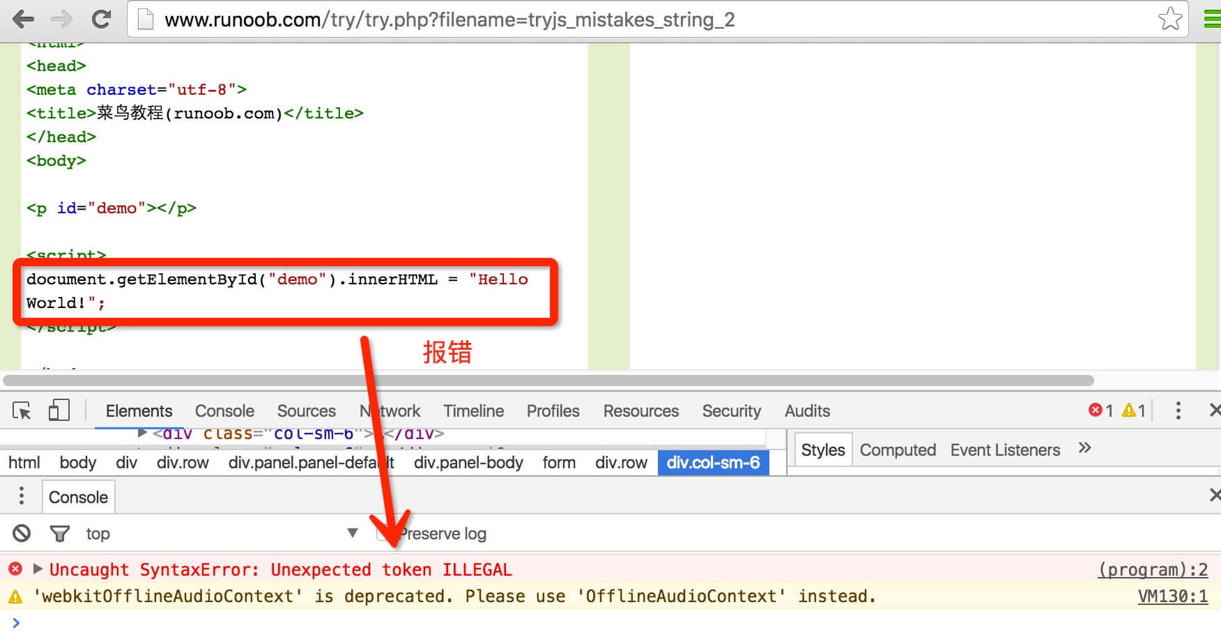 正确的方式是我们需要先使用 typeof 来检测对象是否已定义: