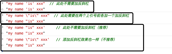 双引号" " 中用单引号 ' ' 可以不用加反斜杠,例如:
