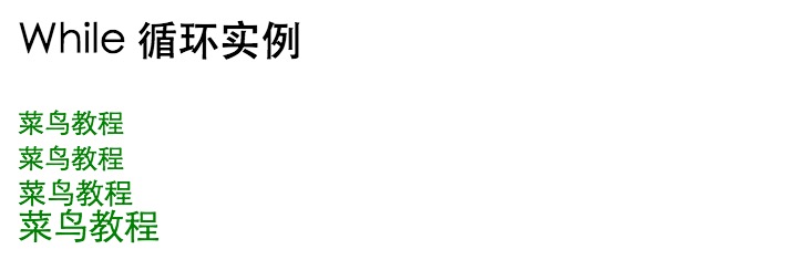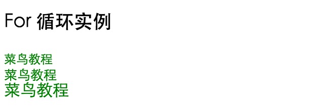 让我们来看看for循环的例子,以下输出的不同字体大小的"菜鸟教程":