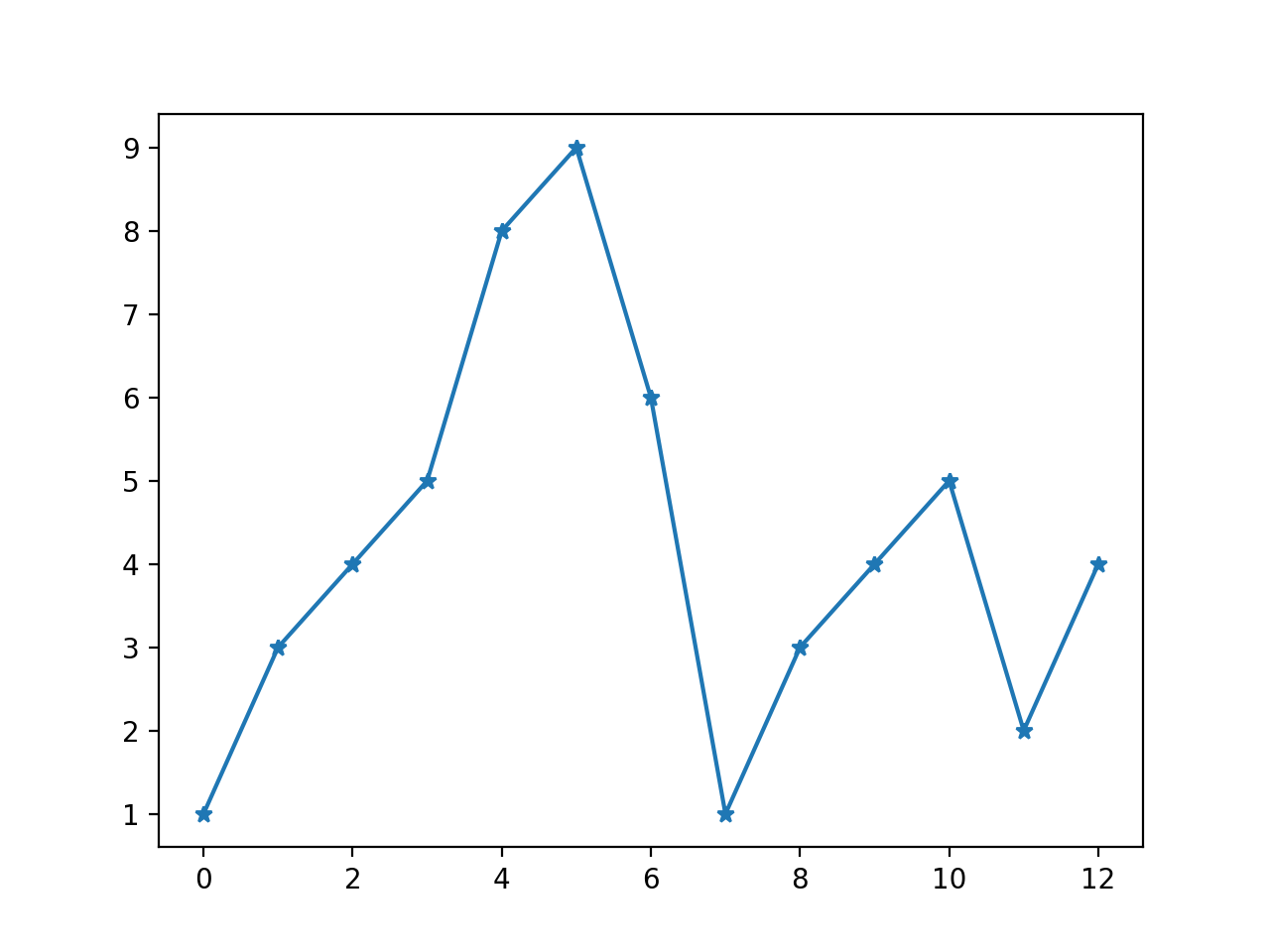 绘图过程如果我们想要给坐标自定义一些不一样的标记,就可以使用 plot() 方法的 marker 参数来定义。