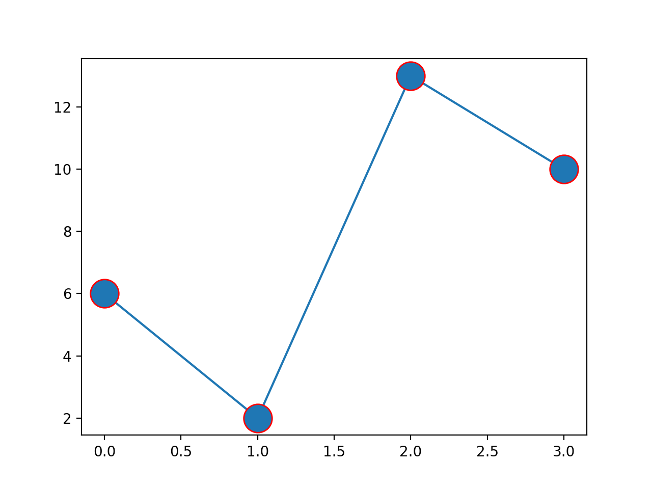 plt.plot(ypoints, marker = 'o', ms = 20, mec = 'r')