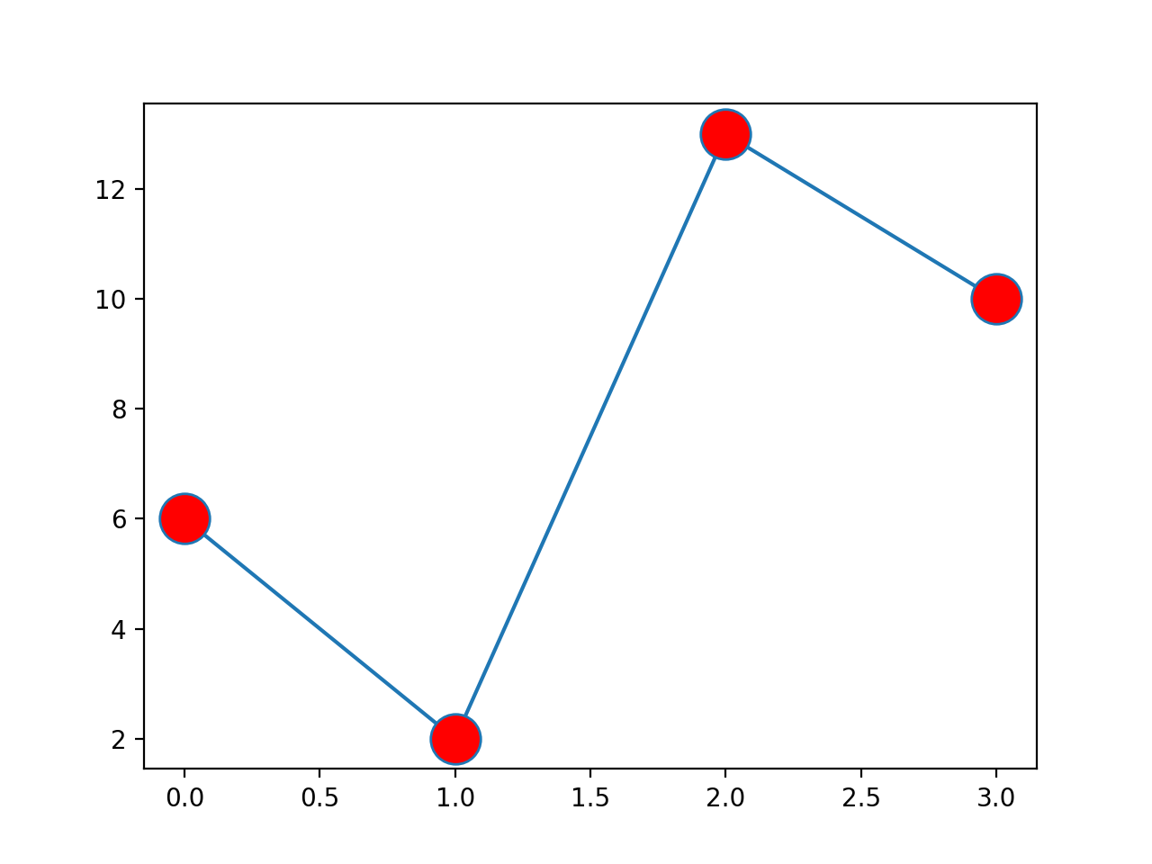 我们可以自定义标记的大小与颜色,使用的参数分别是:- markersize,简写为 ms:定义标记的大小。