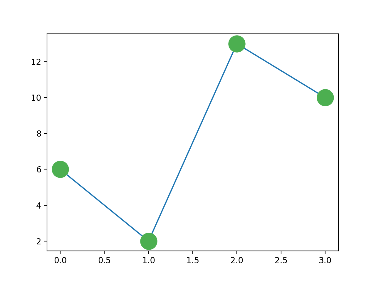 plt.plot(ypoints, marker = 'o', ms = 20, mec = '#4CAF50', mfc = '#4CAF50')