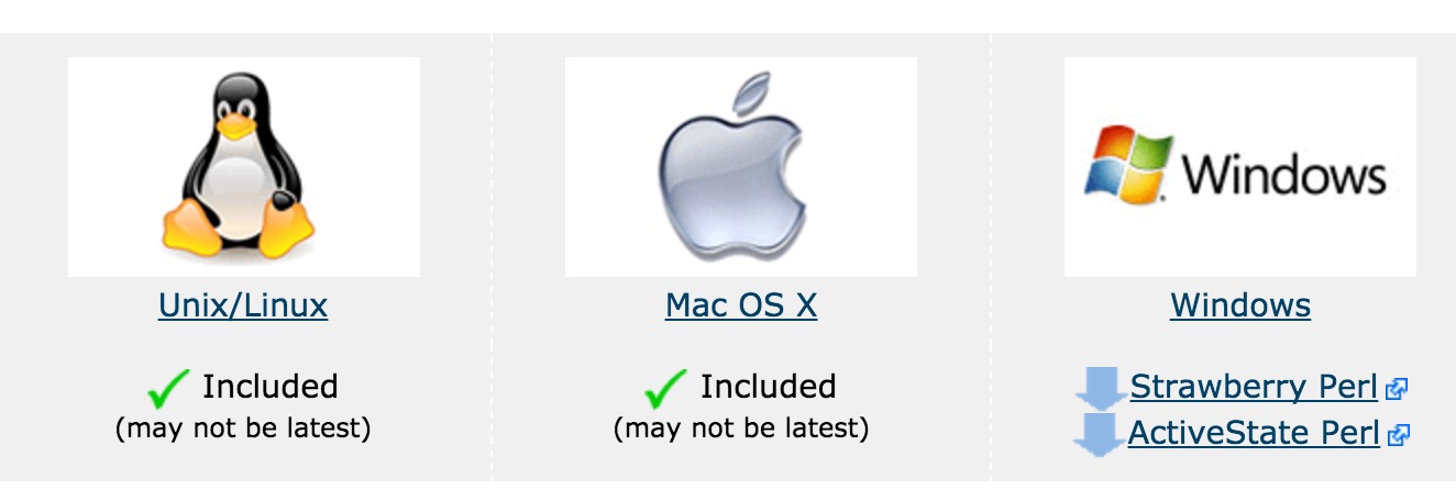 我们可以在 Perl 的官网下载对应平台的安装包:https://www.perl.org/get.html