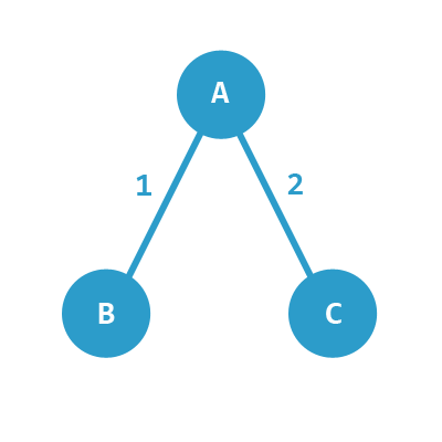 顶点有 A、B、C,边权重有 1 和 2。