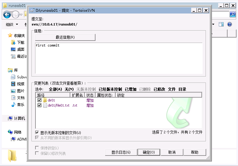 这些档案真正的放入到 Repository 中,空白处右键选择 SVN commit(提交) 紧接着,您将会看到如下的窗口出现: