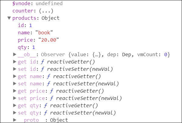从控制台输出的结果可以看出 get/set 方法可用于qty 属性。