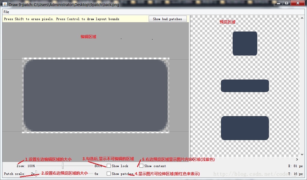 ①Android SDK自带:draw9patch.bat,不过这玩意出了好久,谷歌竟然没更新过...
