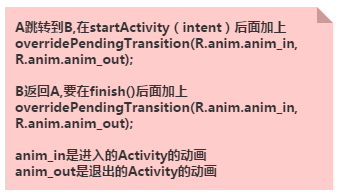 好的,除了上面两种方法以外,还可以使用TransitionManager来实现,但是需求版本是API 19以上的, 另外还有一种addOnPreDrawListener的转换动画,这个用起来还是有点麻烦的,可能不是适合初学者 这里也不讲,最后提供下一些常用的动画效果打包,选择需要的特效加入工程即可! Activity常用过渡动画.zip