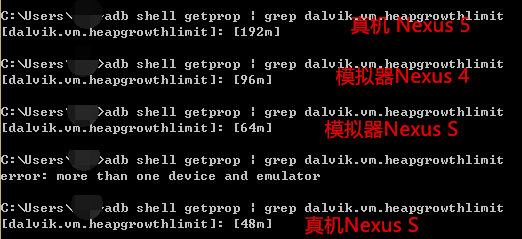 我们关注的地方有三个:heapstartsize堆内存的初始大小,heapgrowthlimit标准的应用的最大堆 内存大小,heapsize则是设置了使用android:largeHeap的应用的最大堆内存大小!