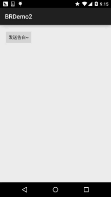 好的,接下来我们把上面这个程序项目运行下,然后关掉,接下来我们新建一个项目, 在这个项目里完成广播发送~新建Demo2,布局就一个简单按钮,然后在MainActivity中完成广播发送:
