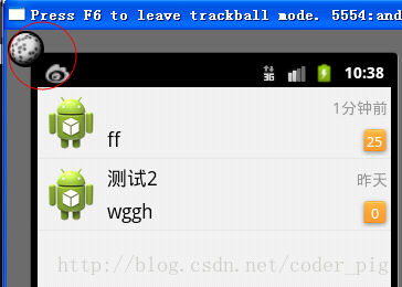 另外,这了解释下什么是轨迹球,不过用处不大,在以前黑莓的手机上可以看到;当我们浏览网页的的时候 ,可以把轨迹球看作鼠标,不过这样的操作,我们用onTouchEvent就可以解决了,而且不够美观,所以现在 用的很好,基本不用,如果你有兴趣想看看的话,可以在原始Android模拟器按f6就可以看到了!