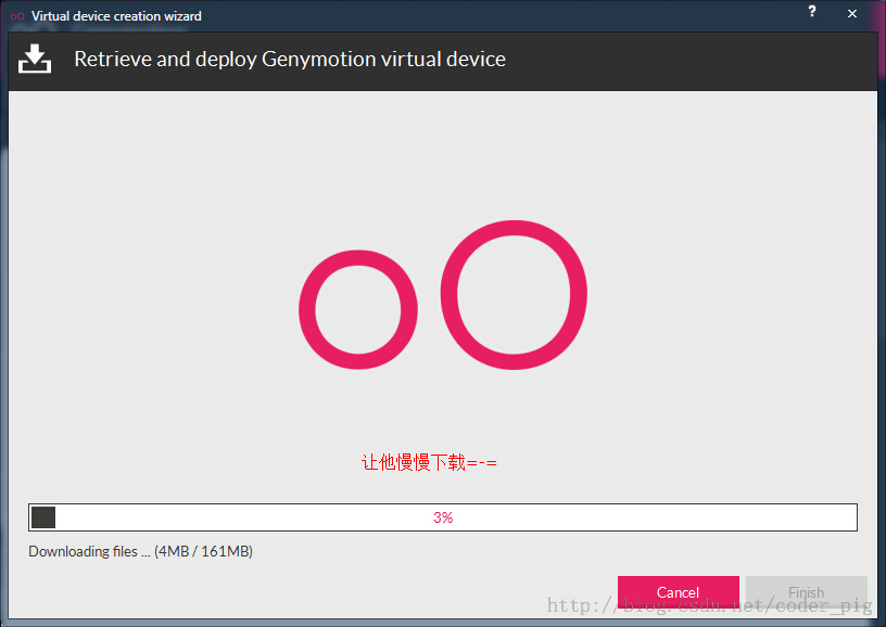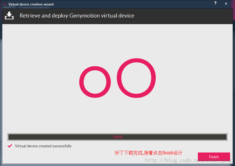 设置完名称后,点击next,就会下载虚拟设备的相关程序以及对应官方的sdk