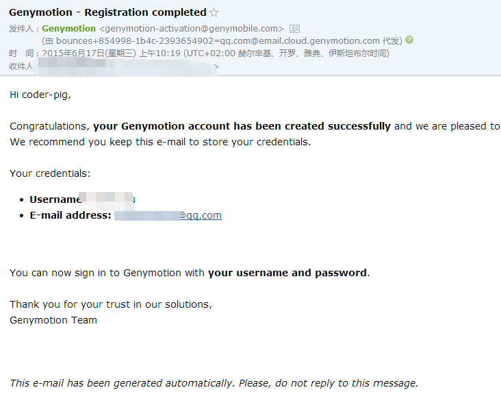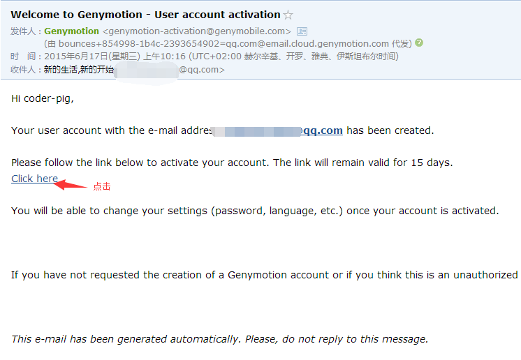 打开邮箱,点击激活账号,然后过一会儿会收到另一封创建成功的邮件
