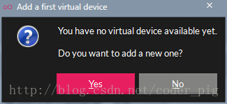 ①运行软件后会来到一个界面,因为是第一次使用,所以需要我们新建一个avd: