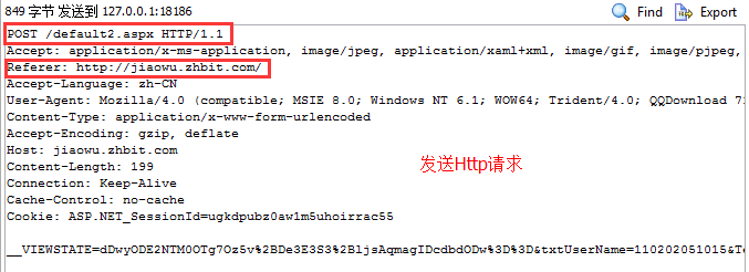 对于上面的流程如果还不清晰,我们可以使用HttpWatch或者firefox抓下包: PS:测试网站是小猪的学校的教务系统,输入账号密码后请求登陆,我们可以看到下述信息: