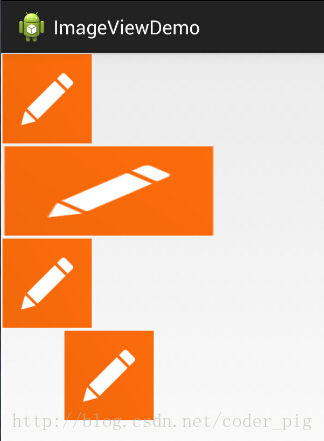在前面的效果图中的第二个Imageview中我们可以看到图片已经被拉伸变形了, 正方形变成了长方形,对于和我一样有轻微强迫症的人来说,显然是不可接受的, 有没有办法去设置呢?答案肯定是有的,笔者暂时知道的有以下两种方式: