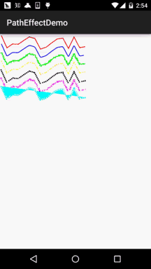 我们自己来写一个View,里面的线移动的效果是phase增加造成的,每次 + 2, 然后invalidate重绘而已,所以别惊讶!PathEffectView.java: