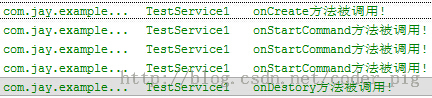 从上面的运行结果我们可以验证我们生命周期图中解释的内容: 我们发现onBind()方法并没有被调用,另外多次点击启动Service,只会重复地调用onStartCommand 方法!无论我们启动多少次Service,一个stopService就会停止Service!