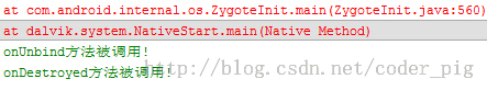 PS:前提是:onUnbind()方法返回true!!! 这里或许部分读者有疑惑了,调用了unbindService后Service不是应该调用 onDistory()方法么!其实这是因为这个Service是由我们的StartService来启动的 ,所以你调用onUnbind()方法取消绑定,Service也是不会终止的!