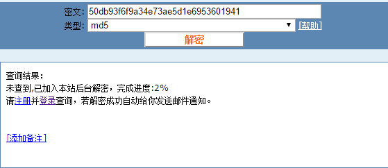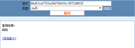 这就是加密过后的呵呵了,我们可以把这串密文拷贝到上面这个md5的在线解密网站: