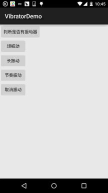 嗯,说回本节介绍的Vibrator,其实就是Android给我们提供的用于机身震动的一个服务! 比如前面我们的Notification中可以设置震动,当收到推送消息的时候我们可以设置震动 提醒,游戏必备,比如"打飞机"的游戏,当你的飞机给人打爆的时候,会长震动!