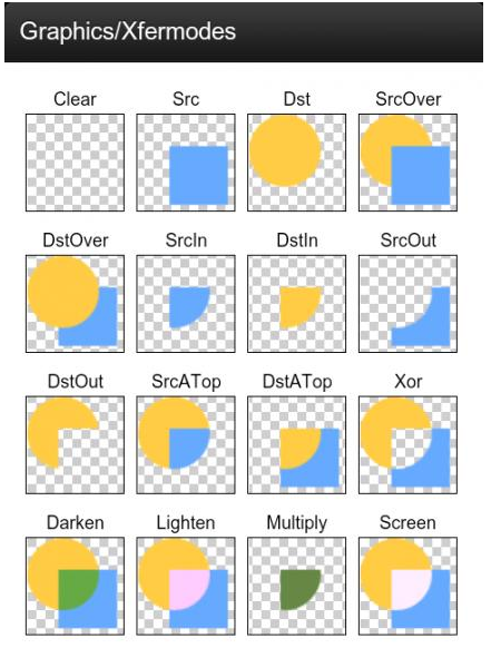 PorterDuffXfermode的PorterDuff.Mode对于我们自定义控件是非常重要的! 本节我们初步了解,下节我们挑几个例子来练练手!
