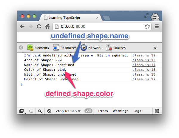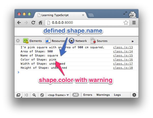 class.ts(12,42): The property 'name' does not exist on value of type 'Shape' class.ts(20,40): The property 'name' does not exist on value of type 'Shape' class.ts(22,41): The property 'width' does not exist on value of type 'Shape' class.ts(23,42): The property 'height' does not exist on value of type 'Shape'
