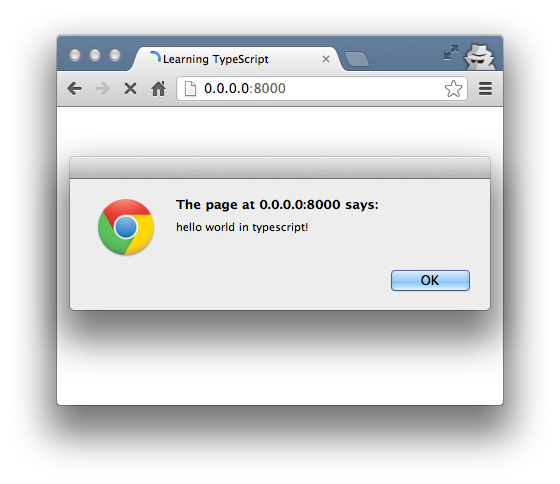 <!DOCTYPE html> <html> <head> <meta charset="utf-8"> <title>Learning TypeScript</title> </head> <body> <script src="hello.js"></script> </body> </html>