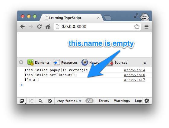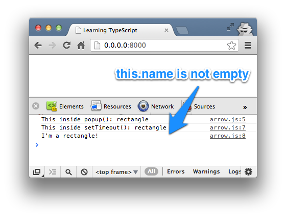 接下来我们使用 TypeScript 的箭头函数。把 function() 替换为 () =>:
