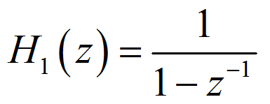 积分器是一个单级点的 IIR(Infinite Impulse Response,无限长脉冲冲激响应)滤波器,且反馈系数为 1,其状态方程和系统函数分别为: