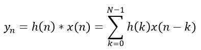 FIR 滤波器本质上就是输入信号与单位冲击响应函数的卷积,表达式如下: