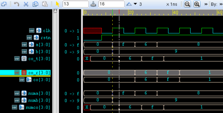 且连接信号 a,b,co_t 与任务内部定义的信号 numa,numb,numco 状态也保持一致。