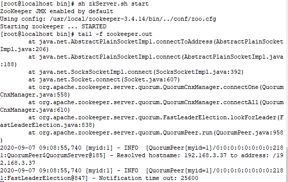 启动 192.168.3.33 并查看日志,此时日志出现报错是正常现象,因为另外两台还没启动,暂时连接不上。