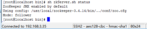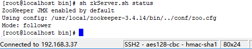 最后显示集群搭建成功!Mode:leader 代表主节点,follower 代表从节点,一主二从。