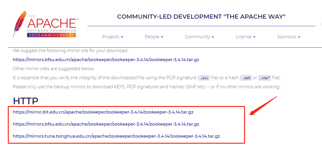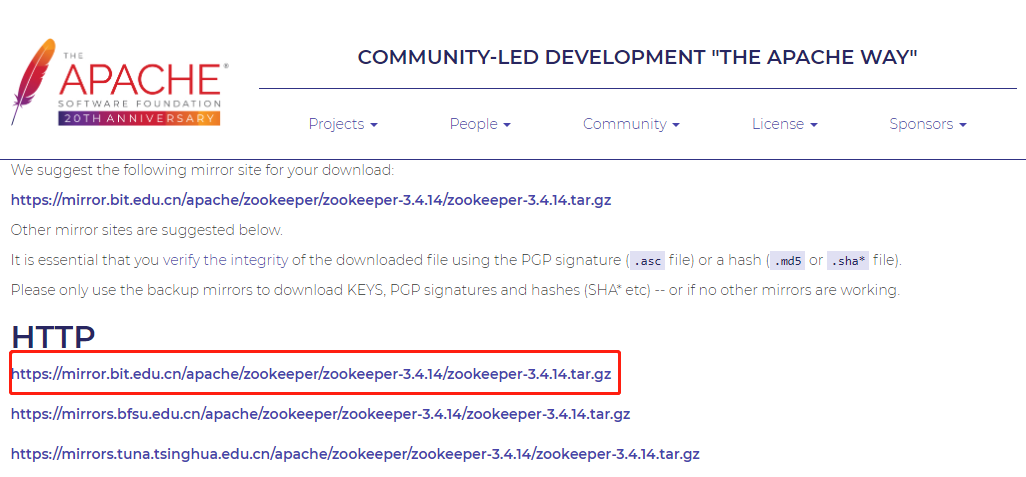 打开网址 https://www.apache.org/dyn/closer.lua/zookeeper/zookeeper-3.4.14/zookeeper-3.4.14.tar.gz,看到如下界面: