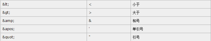 在 XML 中,有 5 个预定义的实体引用: